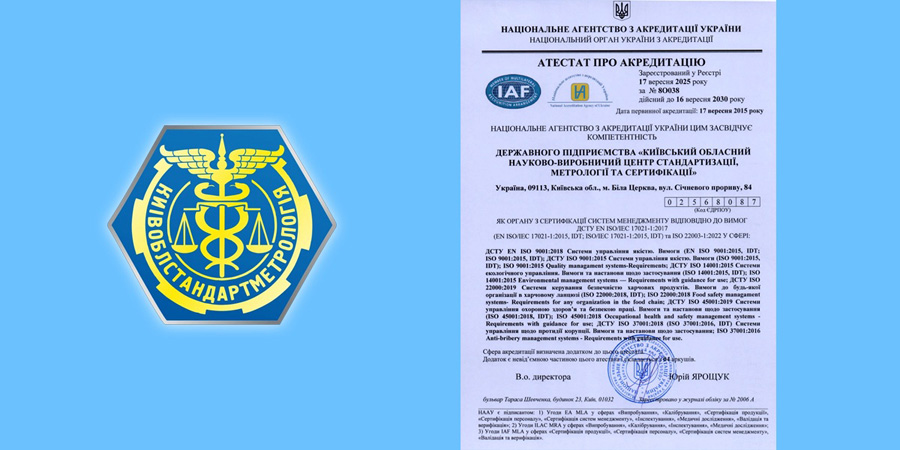 Національним агентством з акредитації України (НААУ) АТЕСТАТОМ ПРО АКТЕДИТАЦІЮ від 17 вересня 2025 року за № 8О038засвідчено компетентністьДЕРЖАВНОГО ПІДПРИЄМСТВА “КИЇВСЬКИЙ ОБЛАСНИЙ НАУКОВО-ВИРОБНИЧИЙ ЦЕНТР СТАНДАРТИЗАЦІЇ, МЕТРОЛОГІЇ ТА СЕРТИФІКАЦІЇ” (ДП […]