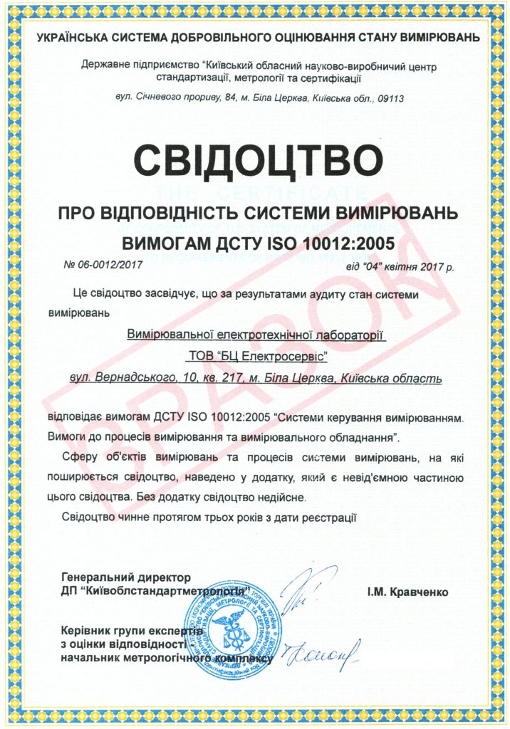 Протягом дії цього свідоцтва передбачається одноразове проведення моніторингу дотримання вимог ДСТУ ІЅО 10012:2005 у відповідності з розділом 8 цього ж стандарту.